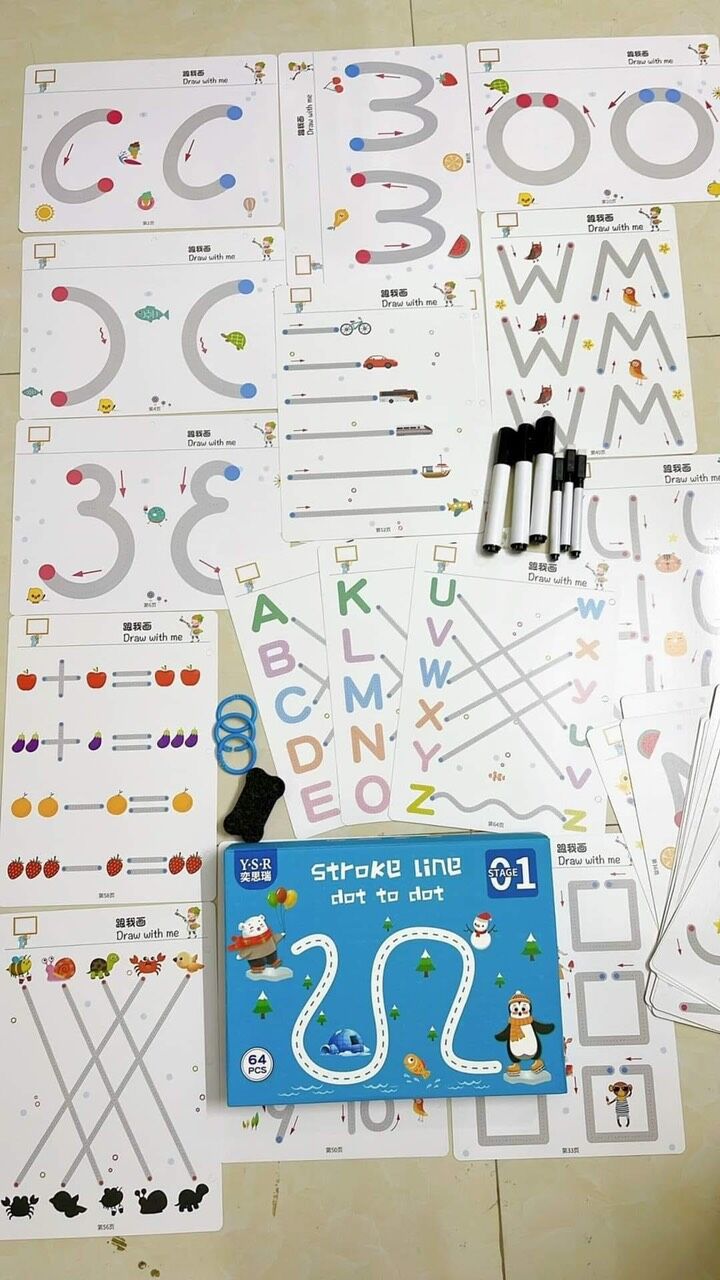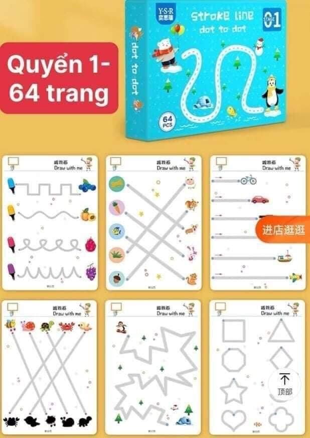 SÁCH HỌC THÔNG MINH XÓA ĐƯỢC 64 TRANG CHO BÉ / SÁCH VẼ STROKE LINE DOT TO DOT